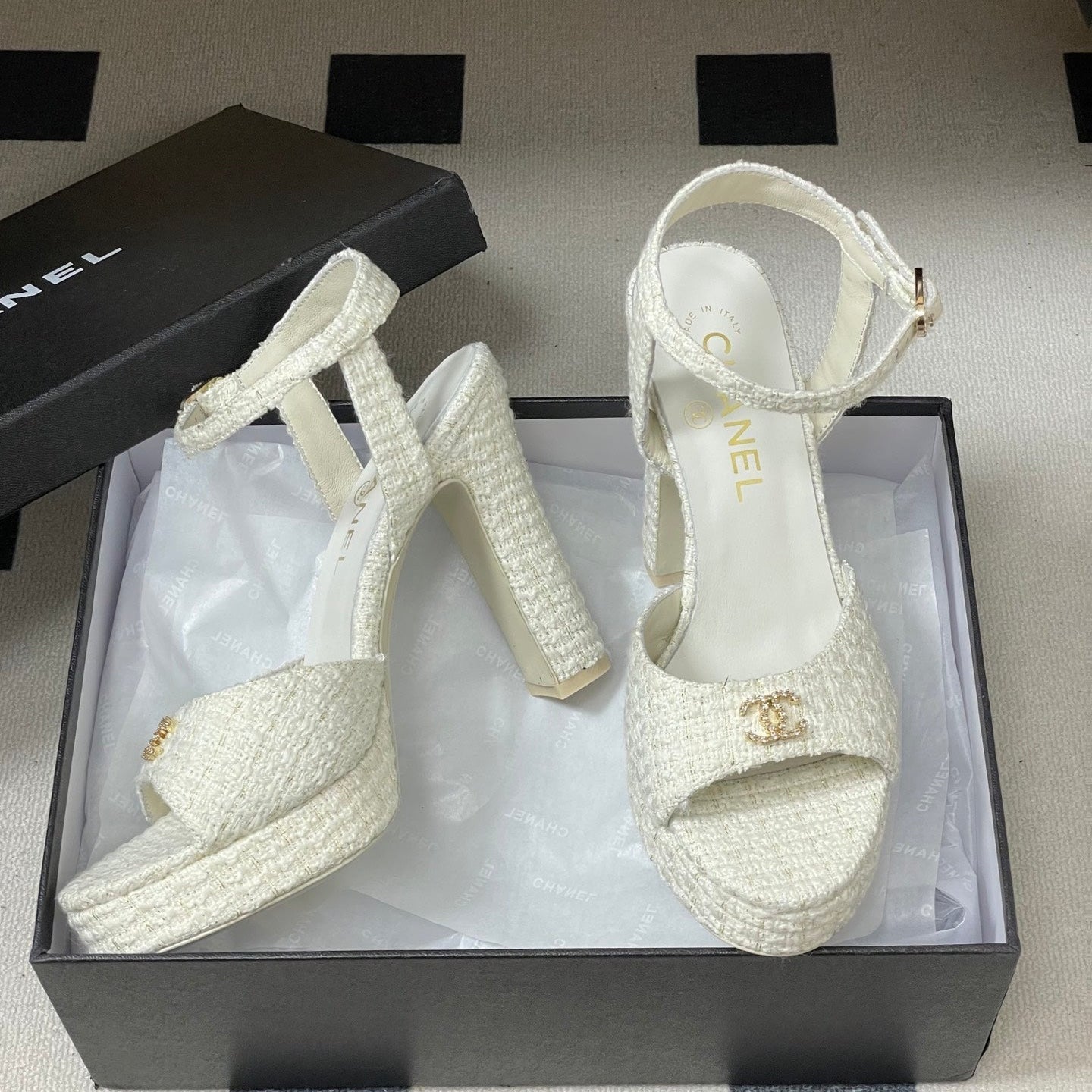 CC 26SS Platform Sandals 120mm White Double C Tweed 632569