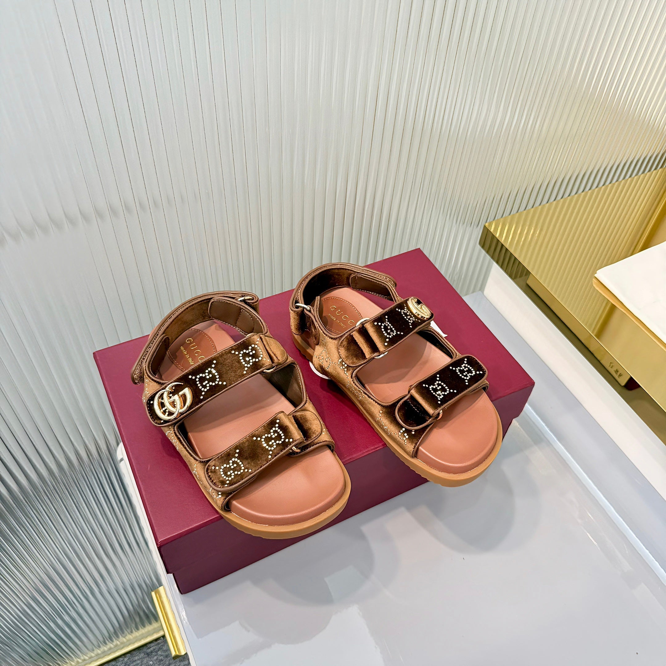 GG 26 Slingback Rhinestones Beige Brown Fabric 592425